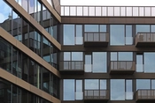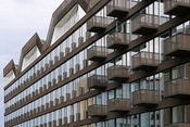 "I A-huset kan du leje en fuld møbleret lejlighed en dag ad gangen. Du kan spise i restauranten eller handle ind i dagligvarebutikken i stueetagen og lave madi den egen lejlighed, imens du vasker tøj i vaskemaskinen. Du kan arbejde i lejligheden eller i lejlighedshotellets mødelokaler og sky-lounge. Trænger du til at røre dig kan du bruge fitnesscenteret eller de grønne områder, som omgiver Stay - et hotel, som består af servicerede lejligheder; luksuslejligheder med alle de traditionelle hotelservices. Råhuset er resterne af Thorvald Dreyers industribygning fra 1960, og tag og facade er fra 2010. Den nye facade består af aluminium og glas. Det gamle industrihus var en stor kuldebro, så de gamle facader måtte ned, og råhuset fik en ny glasfacade; et skelet af historie blev beklædt med tidens teknologi." Marie Sofie Larsen - Arkitekten Marts 2015/3