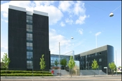 Den nye tilbygning er forbundet til den oprindelige bygning via en treetagers let bygning med facader i glas og svævende broer der forbinder den nye og den gamle administrationsbygning. En markant lodret væg beklædt med rustfri stålplader formidler overgangen de to bygninger imellem. Den nye administrationsbygning står med med sine facader i højpoleret sort afrikansk granit, som en præcis monolit. Den kunstneriske udsmykning er udført af Hjørdis Haack. APA var totalrådgiver på projeket i alle faser fra programmering, projektering og gennemførelse af til - og ombygning.
