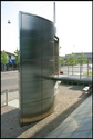 For bevægelseshæmmede er opført et elevatortårn på fortovet.