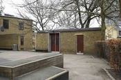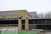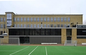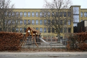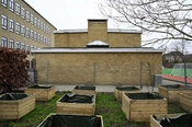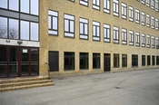 Bygningernes facader er murede med gule klinkebrændte sten og tagene dækket med Icopal. Bygningerne omfatter skolebygning og to lave mellembygninger der forbinder skolebygningen med en tidligere inspektørbolig mod øst og gymnastikfløjen mod øst. I skolegården er der desuden en toiletbygning.