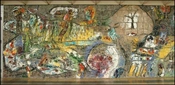 Relieffet er udført til Gymnasiet i 1959 af den dengang ret ukendte Asger Jorn og regnes idag for et af hans hovedværker.