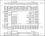 Plan efter udvigelsen hvor de rum, der ses nederst og en ny lysgård, er tilføjet bygningen. Denne plan skal drejes 90o mod uret for at svare til plan II.