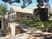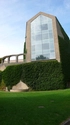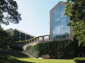 Aulaen set fra campusens park, som er tegnet af Prof. C.Th. Sørensen