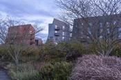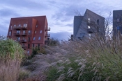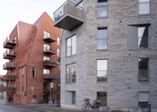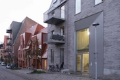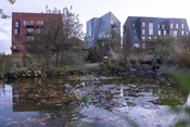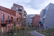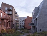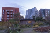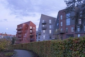 Den 11.800 m² store bebyggelse Æbleøen rummer 146 boliger, 10 byhuse og 136 lejligheder, beliggende lige ved Botanisk Have i Aarhus.