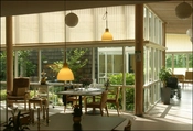Fællesarealerne er opdelt i overskuelige stue-, spise- og køkkenafdelinger, alle udlagt omkring atriumgården.