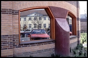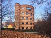Fem etager højt fagforeningshus formet som en cylinder med også trappetårne i cylindriske teglhylstre. Facaderne er struktureret af mønstermurværk i rødlig og mørkebrun tegl. Den runde husform og de næsten ansigtslignende detaljer omkring vinduespartier som denne næse og to øjne gør nærmest bygningen antropomorfistisk.