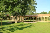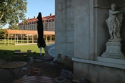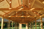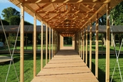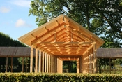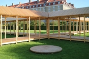 Allépavillonen blev bygget på Platanplænen ved Hercules Pavillonen i den gamle barokhave. Pavillonen er formet som et kors, der, sammen med den eksisterende beplantning, danner forskellige rum, som besøgende kan bevæge sig i. Der er også en mobil scene, der kan placeres rundt omkring i pavillonen til events, foredrag og koncerter. Pavillonen inviterer både til den hurtige gennemgang, da konstruktionen er en fortsættelse af de eksisterende alléer, Damegangen og Kavalergangen – og inviterer også til ophold, hvor man kan dvæle eller gå på opdagelse.