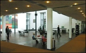 Den oprindelige, dobbelthu00f8je lagerhal har i kanten serviceomru00e5der for byens borgere.