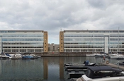 Ved indsejlingen til Københavns havn markerer Alm.Brand sig med den tvedelte konvekse hovedbygning.