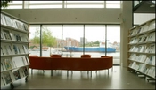 Universitetsbiblioteket er placeret i den sydlige ende af byggeriet.