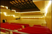 Koncertsalen er beklædt med smukke, lyse asketræes paneler og er overraskende simpelt udformet som en såkaldt shoe-box, som rumligt er optimalt i akustisk henseende.
