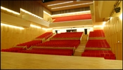 Alle auditorier, hvoraf det største har plads til 130 studerende, er alle beliggende i det fælles plan - stueetagen.