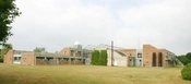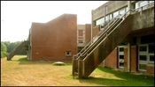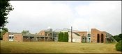 De store bygninger med gråt tag er skolens idrætslokaler, som er gravet godt tre meter ned i forhold til det omgivende terræn. Adgangsmæssigt betjenes disse af en tunnel i kælderen eller en åben, flisebelagt sti.