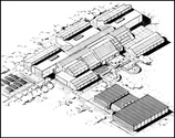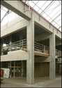 De præfabrikerede betonelementer afstives med enkelte, stabiliserende vægge - ligeledes i jernbeton, men støbt på stedet.