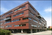 Den kobberbeklædte monolit hæver sig fem etager over terræn og kan ses på lang afstand. En rampe fører op til hovedindgangen, der er orienteret mod syd og i direkte forbindelse med P-arealerne. Bygningens fire kontoretager er hævet ca. fire meter over gadeniveau og står visuelt på en transparent parterre etage, som rummer kantine, auditorium og mødefaciliteter.