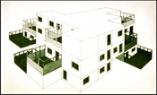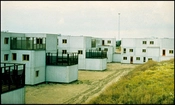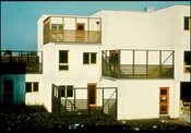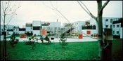 Der opnås en vis variation ved at de kubiske boliger stables som trapper med altaner på taget af den under- og foranliggende bolig.