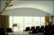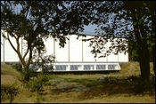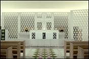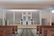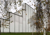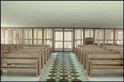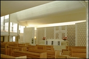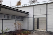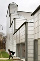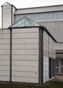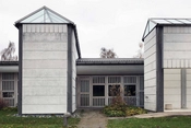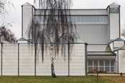 Vestgavl med hvid kakkel- og bølgeprofilbeklædning forlener den moderne kirke med et pragmatisk strøg af anonymitet.