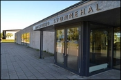 Svømmehallen ligger på en lille bakke. Sti fører op fra Værebrovej til indgangen
