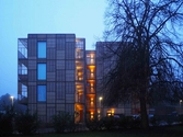 De 40 ungdomsboliger er placeret i to koblede bygningsvolumener på fire og fem etager, forbundet af et trappetårn, hvorfra de små etværelses lejligheder nås via svalegange. Lejlighederne er mellem 38 og 46 m2 store disponeret i en lille kompakt unit med garderobe og køkken i en samlet pakke langs den ene væg og badeværelse overfor. I endevæggen åbner en dobbeltsidet glasdør ud til en terrasse eller altan i hele lejlighedens bredde.