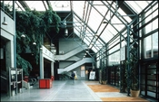 Hovedindgangen til centeret udgøres af en stor glasoverdækket hal.