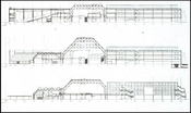 Snit i auditorium/biograf, centalhal med restaurant samt mart-områder.