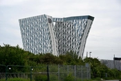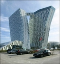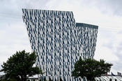 Hotellets dynamiske vredne form skifter udseende kraftigt alt efter hvor man ser det fra.
