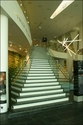 Hovedtrappen fra lobbyen op til restauranten er smallest øverst.
