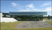 Bygningen er udformet som et rektangulært volumen med en udkraget tagkonstruktion, der udvider bygningen opefter. Tagkonstruktionen udgør altså en del af den underliggende hal ligesom trempelkonstruktioner kendt fra lader og staldbygninger.
