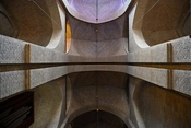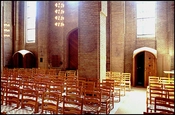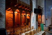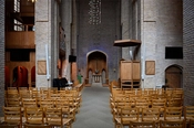 I bunden af kirkerummet dominerer Kaare Klints specialtegnede kirkestole fuldstændig.