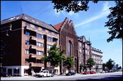 Bethlehemskirken (grundsten nedlagt 1/9 1935, indviet 13/2 1938) er indbygget i den øvrige husrække på Åboulevard. Facaden af røde mursten har forneden ved 2 små sideindgange og en bred hovedportal under 3 høje, gotiske vinduer en gennemført tredeling, der foroven samles under en todelt gavl med kamtakker og dybt nedtrukne højblændinger. Den snævre, uregelmæssige byggeplads medførte en usymmetrisk opbygning af det indre. Mens det højre sideskib mod sydøst kun blev på 2 hvælvingsfag, er midtskibet og venstre sideskib på 4 fag; og da byggegrunden hindrede, at kirken byggedes i dybden, er der til gengæld bygget i højden m. pulpiturer øverst over sideskibshvælvene og orgelpulpitur i lavere højde i nordvestlige sideskib ved koret. Materialet i det indre er lyse, gule sten, også i de upudsede hvælvinger. I opbygningen er anvendt et nøje gennemført proportionssystem, der omfatter de små vindfang, alterets tabernakel, arkaderne og hvælvingerne.