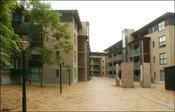 Kollegiet består af tre fire-etagers blokke, der omkranser Rosenbæk Torv.