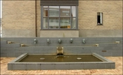 Over pladsen mellem bygningerne løber den reetablerede Rosenbæk