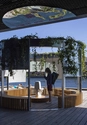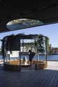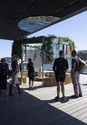 Det andet element er pavillonens bund, som udgøres af en rund træbænk og en plint som toilettet står på. Disse dele repræsenterer bygningens store, underjordiske bio-tank, der er en central men skjult del af bygningen. I pavillonen inviterer bænken og plinten besøgende til at slå sig ned og læse om biocenteret. Det sidste element er en cirkulær stålstruktur, der indrammer pavillonens indre del. Denne afgrænsning repræsenterer de sociale, økonomiske og kulturelle muligheder, som biocenteret skaber for det omgivende lokalsamfund.