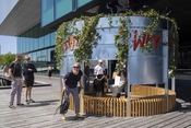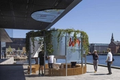 Pavillonen ved BLOX er en fortolkning af et af Arkitekter Uden Grænsers udviklingsprojekter, et biocenter i Uganda, og er opført ved BLOX i forbindelse med at København er World Capital of Architecture og vært for UIA – World Congress of Architects. Pavillonen er åben fra d. 10. juni til d. 7. juli.