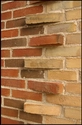 Murværket er opført af røde og gule vandstrøgne mursten, der som en lynlås hæfter sig sammen i portåbningerne. Brugen af forskeligt farvede mursten er et citat fra de gamle Københavnske boligkarreer, hvor der blev brugt røde sten mod gaden og gule mod gården.