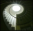 Hovedtrappen er en elipseformet spindeltrappe der snor sig op igennem etagerne mod et kupelformet ovenlys.