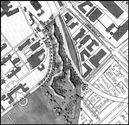 Til venstre adgangsvejen Bispebjerg Bakke. Den strærk kuperede grund falder over 10 meter fra vest mod øst.