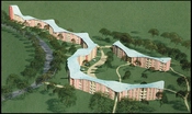 Byggeriet består af to bygninger, der snor sig som en slange gennem terrænet. Bygningerne er på tre til fire etager med en tårnagtig udformning, der enkelte steder stiger til otte etager. Bebyggelsen er opført i solide, velafprøvede materialer efter gedigne, håndværksmæssige traditioner kombineret med industrialiseret byggeskik. Vinduerne er lavet af træ og tagene af kobber.