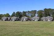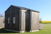 Hytterne er placeret på to linier, forskudt fra hinanden, så alle hytter har udsigt over markerne