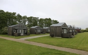 De 10 campinghytter ligger placeret på to rækker på hver side af en lille bilvej. Hytterne er 25 m2 store, med seks sengepladser fordelt på to små værelser og to hemse. Køkken og spiseplads er placeret centralt i hytten, med udgang til den store terrasse. Badeværelset i det nord-østlige hjørne af hytten og indgangspartiet i det syd-østlige er de eneste elementer, som bryder volumenet og facadernes strenge symmetri.