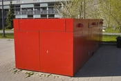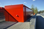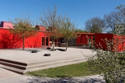Den 910 kvadratmeter store institution, med plads til ca 80 børn, er karakteristisk for arkitektfirmaet ONVs produktion, og samarbejde med firmaet Scandi Byg. Huset er opført af præfabrikerede moduler, med en byggetid på bare knap 3 måneder. I husets udformning er der arbejdet med den røde farve som et stærkt arkitektonisk element, der skaber sammenhæng gennem huset. Bygningen har brede træterrasser hele vejen rundt langs facaderne og med direkte adgang fra de fem stuer.