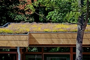 Bæredygtig børneinstitution. Den kombinerede vuggestue og børnehave Marthagården på Frederiksberg er et eksempel på, en institution hvor bæredygtighed er i fokus både i arkitekturen og pædagogikken. Institutionen består af to gamle huse, som er blevet renoverede, og en ny tilbygninge, som fungerer som bindeled mellem de to huse. Ved at genbruge de eksisterende bygningers mellemrum dannes en arkitektur i lille skala med små huse, mellemrum og nye opholdsmuligheder i læ, sol og skygge. En del af den nye tilbygning er uopvarmet. Dette fungerer ved hjælp af ved solvarme og naturlig ventilation. Om sommeren åbnes op og ventileres, imens solens stråler varmer rummet op om vinteren. Bygningerne har et solcelleanlæg, og der er plantet grønne tage på de nye tilbygninger som optager regnvand og dermed aflaster kloaksystemet. Alle materialerne i det nye byggeri er enten organiske eller har fokus på genbrugsprocesser som cradle to cradle og upcycling. En køkkenhave, krydderivæg og et væksthus bruges i den pædagogiske virksomhed, hvor børnene lærer at dyrke grøntsager og lave økologisk mad. Da 75% af forældrene afleverer sine børn på cykel, er der i ombygningen lagt vægt på en ny hovedindgang ved den grønne kile, som giver god plads til cykelparkering.