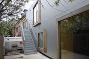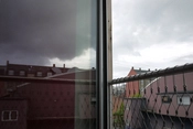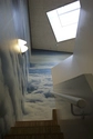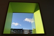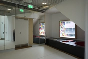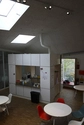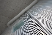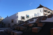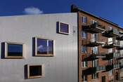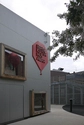 Bygningen er udformet som et overraskende hus, der vender verden lidt på hovedet og behandler tag og facader ens, beklædt med sinusformede aluminiumsplader. Ovenlys og vinduer er udført som karnapper i akacietræ.