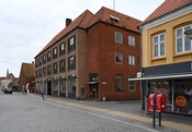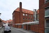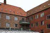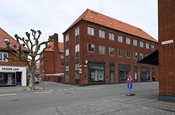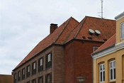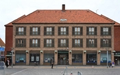 Bygningen er opført i forskellige materialer for ikke at virke for dominerende i bybilledet. Således er hovedfløjen mod torvet opmuret af en lysgrå bornholmsk sandsten, mens fløjene mod Antoniestræde og Snellemark er opført i mørkerøde mursten.