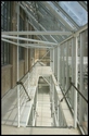 Udvendige glasbeklædte trapper forbinder husets etager.