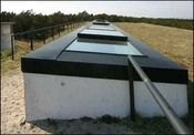 Besøgscentret lader den eksisterende bunker stå næsten urørt – kun ammunitionsgangen lægges ind ved hovedindgangen som adgangsvej til kanonstillingens labyrintiske indre. I kontrast til den totalitære arkitektur fremtræder besøgs- og dokumentationscentret åbent og venligt med kontakt til både horisonten og himmelhvælvet som en lysende linie i landskabet.