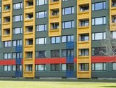 Ved en renovering i 1992 fik Bybjerget de nuværende farvede facader, og altanerne blev gjort større. På grund af farverne bliver byggeriet også kaldt Papegøjehuset.