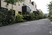 De 110 rækkehuse i to og tre etager, ligger fordelt på frem karréer ved Havnevigen på Islands Brygge.