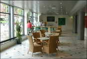 Hotel Cabinn er beliggende umiddelbart i forlængelse af Banegården i Odense og indpasser sig relativt stilfærdigt i helheden.