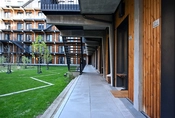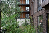 Altangangene mod det afskærmede gårdrum giver mulighed for ophold uden for egen bolig. Med mindre opholdslommer og sekundære trappeforbindelser imellem etagerne, bydes der op til et spirende liv med fællesskaber på alle niveauer.